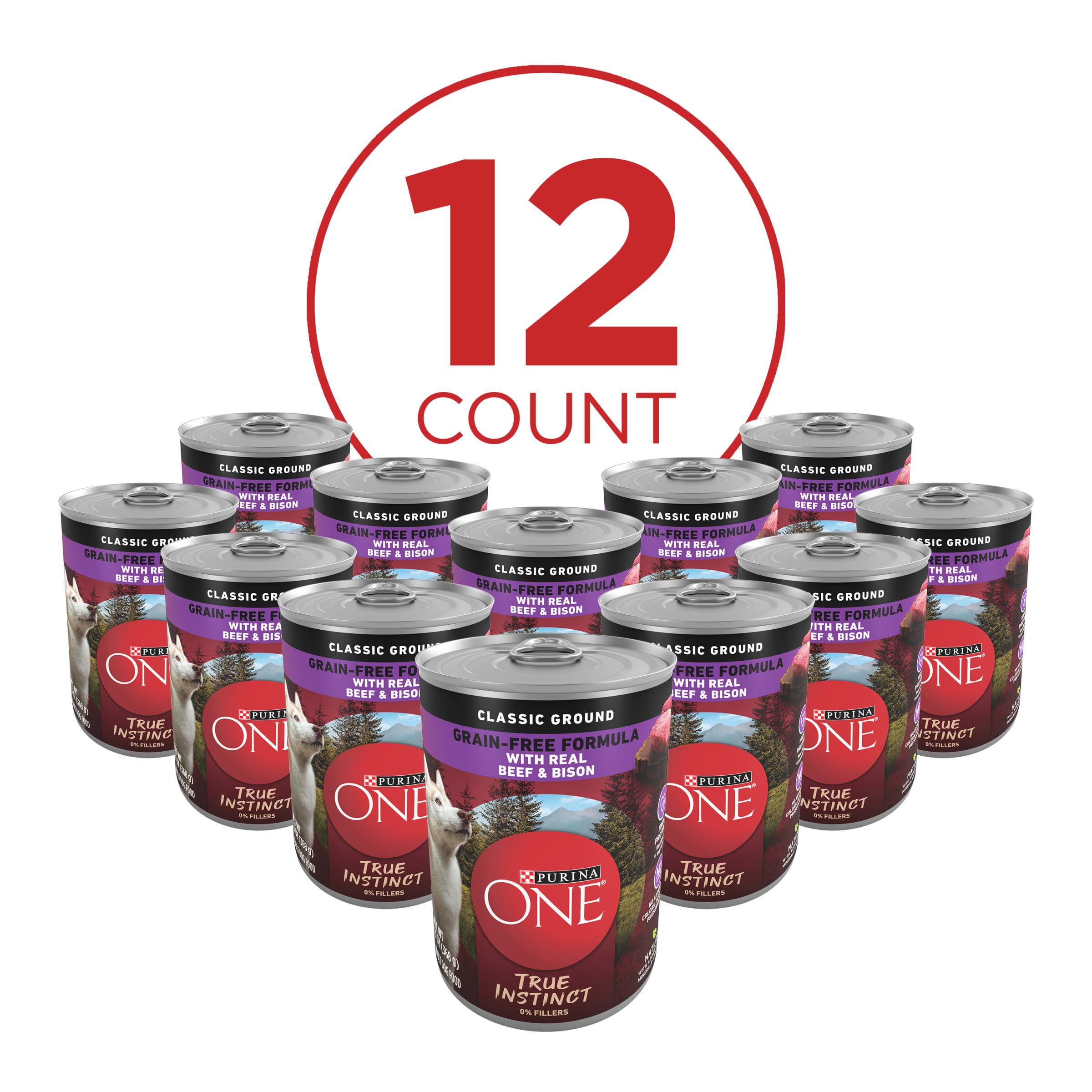 Purina ONE Wet Dog Food True Instinct Classic Ground Grain-Free Formula With Real Beef and Bison High Protein Dog Food - (Pack of 12) 13 oz. Cans